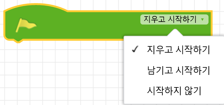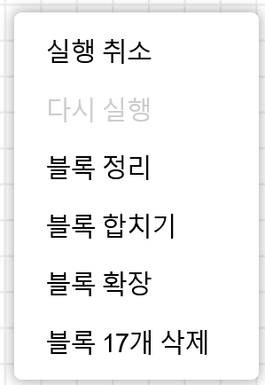 블록이 없는 작업공간의 빈 곳에서 팝업 메뉴를 열면, 작업공간을 통제할 수 있는 명령메뉴가 나타난다.