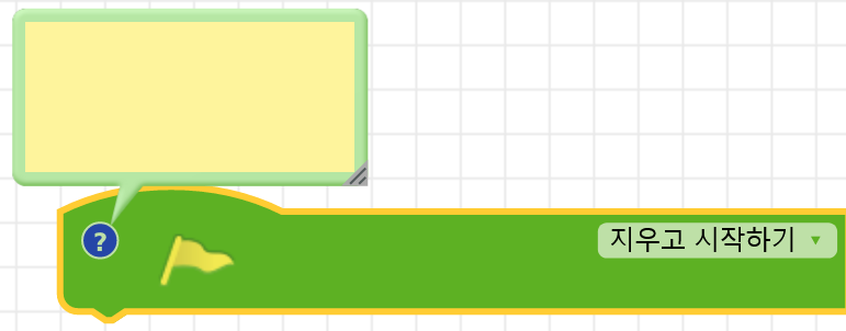 블록에 코드의 이해를 돕기 위한 메모 또는 간단한 설명을 남기고자 할 때 쓰인다. 주석을 추가한 블록은 이 메뉴값이 '주석 삭제하기'로 바뀐다. 그리고 블록에 주석을 추가하면, 블록의 좌측면 상단에는 파란색 동그라미 모양의 물음표 버튼이 활성화된다. 주석이 드러난 상태에서 물음표 버튼을 클릭하면, 주석이 감춰지고, 주석이 감춰진 상태에서 물음표 버튼을 클릭하면, 주석이 드러난다.